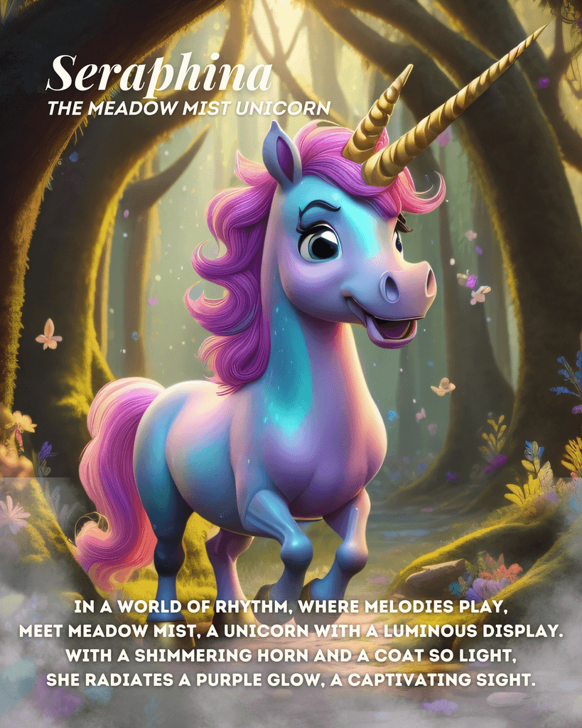 "The Secret of Whispering Woods" is a heartwarming tale about Seraphina, a gentle unicorn who embarks on an enchanting adventure through the mystical Whispering Woods. Along her journey, Seraphina encounters a diverse group of forest creatures, including Ziggy the playful squirrel, Lily the curious rabbit, and Archibald the wise old owl. Initially shy and unsure, Seraphina learns the true value of friendship as she and her newfound companions face various challenges together.